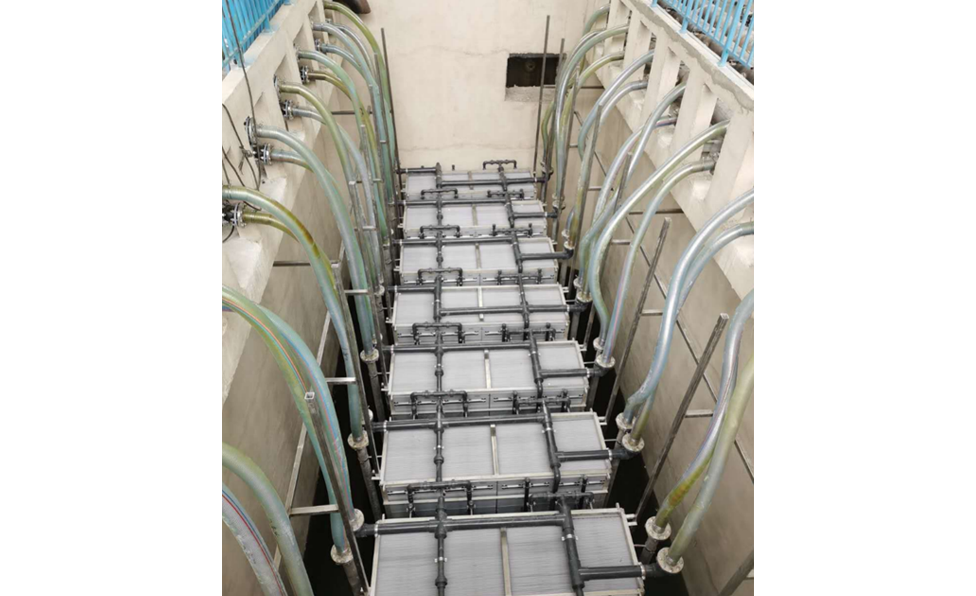 项目特点:原水为周围居民生活污水,分别经A2O工艺和氧化沟处理后,汇总进入膜池统一处理后,膜组件产水达标排放。