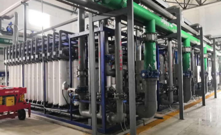 使用双侧口外压超滤,且带有隔断阀,既节省了占地面积,又可以单支检测而不影响运行,设备整体稳定运行,出水浊度≤0.2NTU,出水SDI≤3。